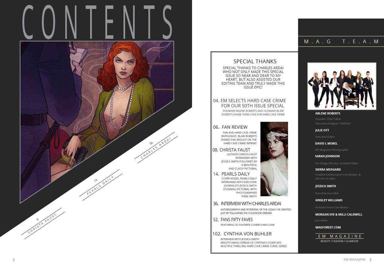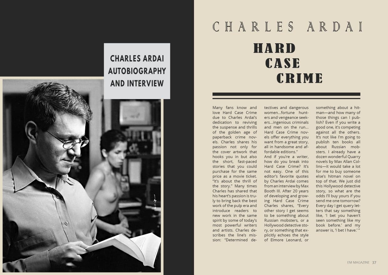 EM Magazine Celebrates our 50th Issue as we begin our 4th year publishing EM Magazine with Epic style! Publisher and EM Modeling Agency Founder Arlene Roberts reaches out to award-winning author, editor, and fellow publisher Charles Ardai! Arlene greatly admires Charles for many of his professional talents and skills, as well as his astute business intellect. Many of our readers and followers know, Arlene Roberts has been fighting stage 4 cancer for 5 years. Arlene shares, “I chose Charles Ardai to collaborate on our biggest issue yet, for the simple reason that my hubby and I have to deal with Cancer 24/7. But when we sit back in the evenings, turn off all the electronics, put our 10-year-old son to bed for the night, and turn up the heat with some thrilling novels published by Hard Case Crime, we escape “The Big C” through “HCC”. Thank you Charles Ardai, and thank you to all of the outstanding authors, and artists within the Hard Case Crime Family!”