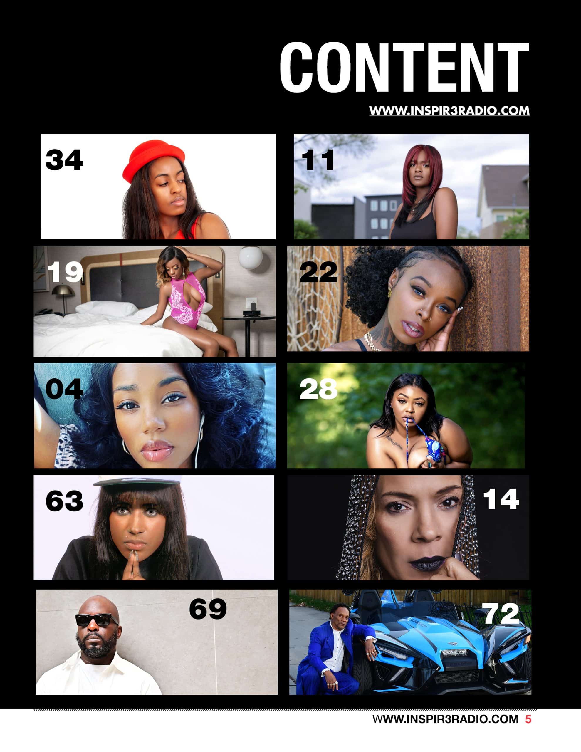 Welcome to the fifth edition of Inspir3 Radio Magazine, where creativity and talent collide! Our pages are bursting with captivating content that will leave you inspired. Ice Chillz is a model and radio host on Inspir3 Radio. She appears in lingerie on a sports bike, she shares her career highs, personal stories, and insights into relationships. Celebrity Spotlight: A’Pryl, the renowned artist, graces our opening pages. Her mesmerizing paintings take center stage, and she generously shares tips for new artists.