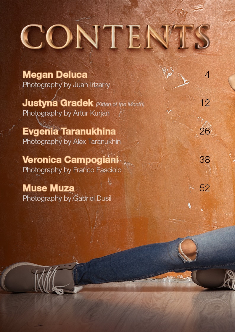 Models: Megan Deluca, Justyna Gradek, Evgenia Taranukhina, Veronica Campogiani, Muse Muza,